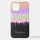 Contemporary pastel and hot pink, mint, lime green and orange glitter drip pattern. With room to customise with name, monogram or initials of your choice. This design is available Apple iPhone 6, 7 and 8 Plus, 10 or X, XR, XS , 11, 12, and 13 Mini and 14 Plus and Pro Max cellphone cases. Show off your personal style, look fashionable trendy and feel stylish with a unique design on a mobile device accessory of your choice.