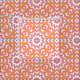 Seamless decorative geometric pattern featuring geometric shapes in orange, pink and white.