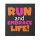Run and Embrace Life text T-shirts, hoodies, magnets, mousepads, cards, stickers, key chains, buttons, magnets, paper plates and napkins, gift bags, candy tins, watches, and many other items with a bright pink and orange design. These running theme products make great gifts for anyone who runs for fun, runs track, marathons, half marathons, 10Ks, or 5Ks!
