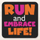 Orange Pink Text Run Runner Marathon Square Paper Coaster
