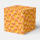 This party favour box features a pixelated pattern of squares in shades of orange and yellow designed with geeks and gamers in mind. The pattern resembles 16 bit images used in many popular video and computer games.