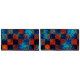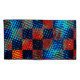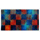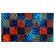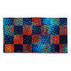 Plaid with crossed scratches, dark blue and scratches in light blue and orange with red stained tones and dark edges on the strokes that can cause the perception of dirty or stained.