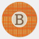 Orange Plaid & Brown Kraft Rustic Monogram Initial Classic Round Sticker