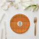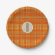 Orange Plaid & Brown Kraft Rustic Monogram Initial Paper Plate