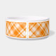 Lovely plaid pattern in orange colour scheme. There is also an oval shape banner that has a personalizable text area for the name of the pet. The font is a nice script font in orange colour.