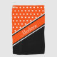 Orange Polka Dot Black Diagonal Script Name Golf Towel