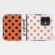 Custom iPhone 5 case personalised with your name, and designed with an orange & white polka dot pattern and an orange & black polka dot pattern.