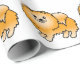 Destei's original cartoon illustration of a cute orange coat colour Pomeranian breed dog as a pattern.