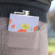 The flask itself is fine. It’s a cheap flask, obviously bought in bulk, however am prepared to overlook that. Given that it is a personalized item, I would have liked to have seen gift boxing instead of the generic packaging. Terrible printing, and/or quality. It’s a cheap, tacky vinyl. It is not cut straight and is also applied in a way that it is overhanging the bottom, causing the glue to catch on items and it will eventually roll and tear, damaging the wrap.