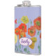 Orange Poppies Floral flowers Pastel lilac Purple hip flask, with a fully customizable name. A beautiful gift for the Birthday Girl. Designed for one of my original rose watercolors.