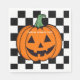 A paper napkin with an orange pumpkin face. Matching plates and cups available. You either remove the text or edit it to your own with the design tool.