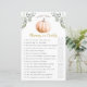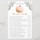 Add laughter and fun to your fall baby shower with this charming Mummy or Daddy game card from the A Little Pumpkin Is on the Way collection. Guests will love guessing who’s more likely to handle each baby moment — from diaper changes to bedtime stories! Featuring a soft watercolor orange pumpkin with eucalyptus greenery and ivory berries, this design blends rustic warmth with elegant fall style.