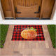 Orange Pumpkin On Black Red Check Pattern Welcome Doormat