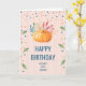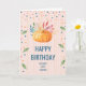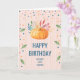 Orange Pumpkin on Pink and Gold Stripes Birthday Card