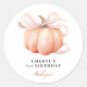 This elegant Our Little Pumpkin is turning one" 1st birthday sticker features a beautiful watercolor illustration of a pumpkin with a delicate pink ribbon, perfect for celebrating your little one in the fall season.
