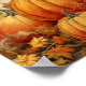 A poster with a rustic illustration with orange pumpkins and fall leaves. An autumn grunge vibe.
