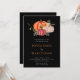 Printed on high-quality black cardstock, this invitation exudes a modern and stylish ambiance that's sure to leave a lasting impression on your guests. The white text adds a clean and crisp touch to the design, making it easy to read and understand all the important details about your special day. The couple's names are highlighted in orange, matching the largest pumpkin and adding a personal touch to the invitation.
