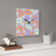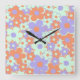 Orange Purple Blue Retro Y2K 70s Flower Pattern Square Wall Clock