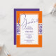 Damask band in purple and white bordered in orange on these graduation party invitations. SEE ENTIRE COLLECTION of pre-done colours in our store. **TIP: Change the background colour, click on customise further link, enter your colour hex code in the #xxxxxx box to match your school colours.