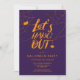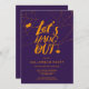 Cute cool modern Halloween spider hang out script with cute spiders illustration and a modern font, a simple minimalist purple and orange party invitation.