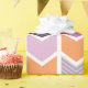 Stylish geometric chevron pattern with dusty purple, tangerine orange and pink colours.