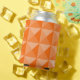 This can cooler has a geometric design of triangles that form squares that look like a bird's eye view of pyramids.