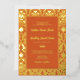 You can personalise the text on this papaya orange and real gold foil damask wedding invitation. The design features a real gold foil damask floral pattern paired with papaya orange. To change the text, use the personalise options. Or, for more extensive changes (font, font size, font colour, text placement), choose customise it. Beautiful and elegant papaya orange and gold. Great for a festive feel or an elegant look.