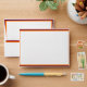These envelopes feature an orange, red, and blue border on the front, top, and back.