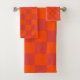 Orange Red Chequered Gingham Pattern Bath Towel Set