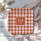 Orange-Red Gingham Monogram Crest Custom Paper Plate