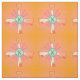 A pretty combed cotton fabric in repeated geometric shapes.Colours of orange cream green and red.This simplistic design is available in other fabrics also .