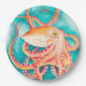 Orange Red Tentacles Octopus Watercolor Paper Plate