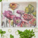 Orange Red Yellow Poppy Watercolour Tea Towel