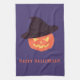 Orange Retro Pumpkin Happy Halloween Tea Towel