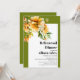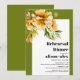 This elegant fall rehearsal dinner invitation showcases a rhododendron branch with orange yellow flowers in the top left corner. The text is displayed in a bold and eye-catching typography, adding a touch of sophistication to the overall design. Surrounding the invitation are olive green borders on three sides, framing the the text. This invitation is sure to set the tone for a memorable and elegant event, inviting guests to celebrate in style.