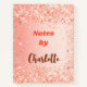 An orange and rose gold gradient background. Decorated with faux glitter sparkles. Personalise and add a title and a name. A notebook for drawings, sketching, notes, journalling, school homework. The name is written with a modern script, signature look.
