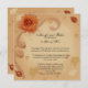 This beautiful design, called Orange Rose in the Fall, would be an elegant and dramatic way to set the tone for your wedding anniversary or event. The background is a dark cream colour with a dark peach coloured ribbon and autumn coloured leaves. In the top left corner is a gorgeous orange rose.