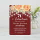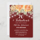 Elegant floral birthday invitation features stunning watercolor orange roses bouquet with string lights on burgundy back drop.
