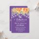 Elegant floral birthday invitation features stunning watercolor orange roses bouquet with string lights on purple back drop.