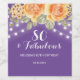 Elegant floral birthday wine label features stunning watercolor orange roses bouquet with string lights on purple back drop.