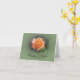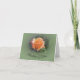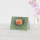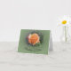 An orange rosebud surrounded by a grey and green slightly oval shaped vignette shading. The text reads "Thinking Of You". This text is customisable if the customer needs to change it. The interior of the card is blank so that the customer can add their own hand-written personal message.