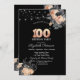 Orange Roses String Lights Black 100th Birthday Invitation