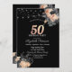 A modern, chic and glamourous invitation with elegant string lights, and flowers.