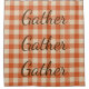 A rust orange and cream buffalo plaid shower curtain is a unique and eye-catching addition to a bathroom decor, combining a classic pattern with warm, earthy colours. The word Gather is customisable so you can change it to add your favourite word like Thankful or Grateful.  The buffalo plaid pattern consists of large, equally sized squares or stripes, usually in a two-colour combination. In this case, the rust orange and cream squares or stripes are arranged in a chequerboard fashion, creating a timeless and rustic aesthetic.