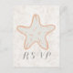 Perfect for a nautical themed wedding is this Rustic Starfish Wedding RSVP Postcard with an orange outlined starfish on a light beige marble look background. This classic and simple beach response card is easy to customise with your wedding details. Find more personalisation options by clicking Customise.
