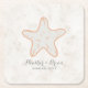 Orange Rustic Starfish Wedding Square Paper Coaster
