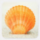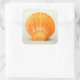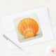 Orange Scallop Shell Standing Upright In Sand Square Sticker