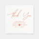 Whimsical Verona sunset orange script calligraphy Thank You fall wedding paper napkins. These charming wedding paper napkins feature a whimsical and elegant design, showcasing a flowing orange script calligraphy. The phrase "Thank You" is beautifully rendered in a delicate script, perfectly complemented by the inclusion of your names for a personal touch.