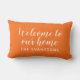 Bold orange and white deliver a vibrant, spirited look on this personalised indoor lumbar pillow featuring Welcome to Our Home in flowing script with your family name. The punchy colorway adds instant warmth and personality to a living room, den, or entryway. All text is fully editable.
