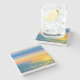 The coasters are gorgeous, a quality feel and heavy weight. They look like a precious archeological find. A rustic stone juxtaposed with a modern floral black and white print. I like the way the print goes slightly imperfect on the cut stone edges giving them a kind-of natural beauty.